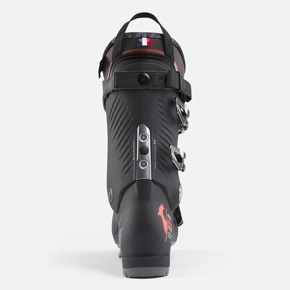 Un contrôle inspiré de la course associé à un fit et un confort inégalés. Destinée aux skieurs qui préfèrent un volume intermédiaire, la chaussure Hi-Speed Pro 130 Carbon MV de Rossignol associe une conception de coque ultramoderne à un fit instantané inégalé. La technologie du Generative design permet d’obtenir un juste poids grâce à des épaisseurs de plastiques fines. La technologie Dual Core permet de renforcer la rigidité en flexion et en torsion de la coque grâce à l’addition de carbone. Les transferts d’énergie sont maximaux ainsi que le contrôle dans les courbes à grande vitesse. Nouveauté, cette chaussure permet une Configuration : d’une part de nombreuses possibilités de réglages des systèmes intégrés – flex, avancée – canting, c’est la personnalisation de la chaussure à votre style de ski. La customisation du chausson 5 zones grâce à la machine de Thermoformage que nous avons développé. Les zones thermoformables se trouvent sur les 5 zones les plus sensibles du pied, tandis que le reste du chausson conserve toutes ses caractéristiques pour une excellent tenue. Chaussez la Pro 130 et découvrez un contrôle exceptionnel doublé d’un confort de tous les instants.