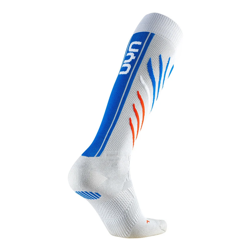 Le design fait de vagues dynamiques caractérise les nouvelles chaussettes de ski Natyon : il apporte un soutien majeur et un maintien du mollet. Pour augmenter la protection et l’absorption des chocs, UYN a introduit le système Shockwave capable de répartir la pression le long de lignes en trois dimensions. La technologie Cool Air Flow permet de maintenir le micro-climat correct des pieds, même à basse température.